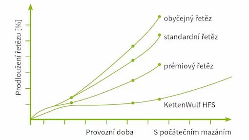 Na řetězy je v horké lázni aplikováno vysoce kvalitní počáteční mazivo.