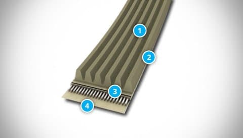 Řemeny jsou vyrobeny z polyuretanu s polyesterovými nebo polyamidovými tažnými vlákny.