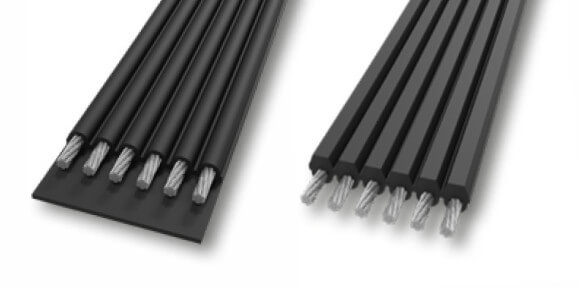 Ploché výtahové pásy CONTI POLYROPE jsou složené z ocelových lan o průměru 2,0 mm zapouzdřených v povlaku z černého polyuretanu.