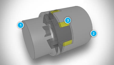 - Pružný element z polyuretanu dovoluje kompenzaci axiálních úhlových vyosení a radiálního přesazení